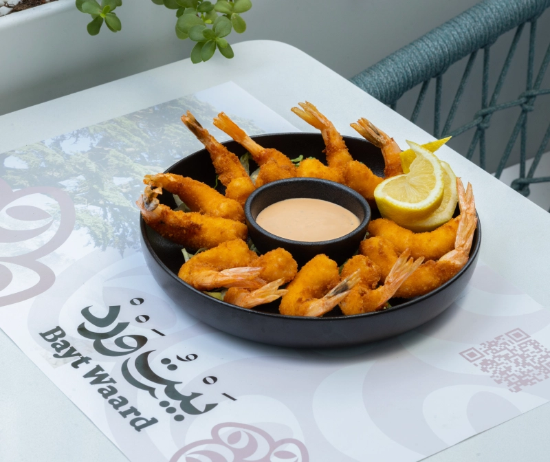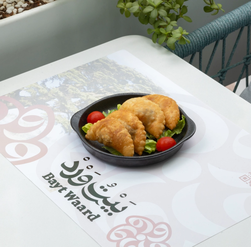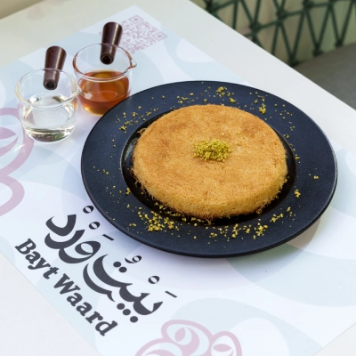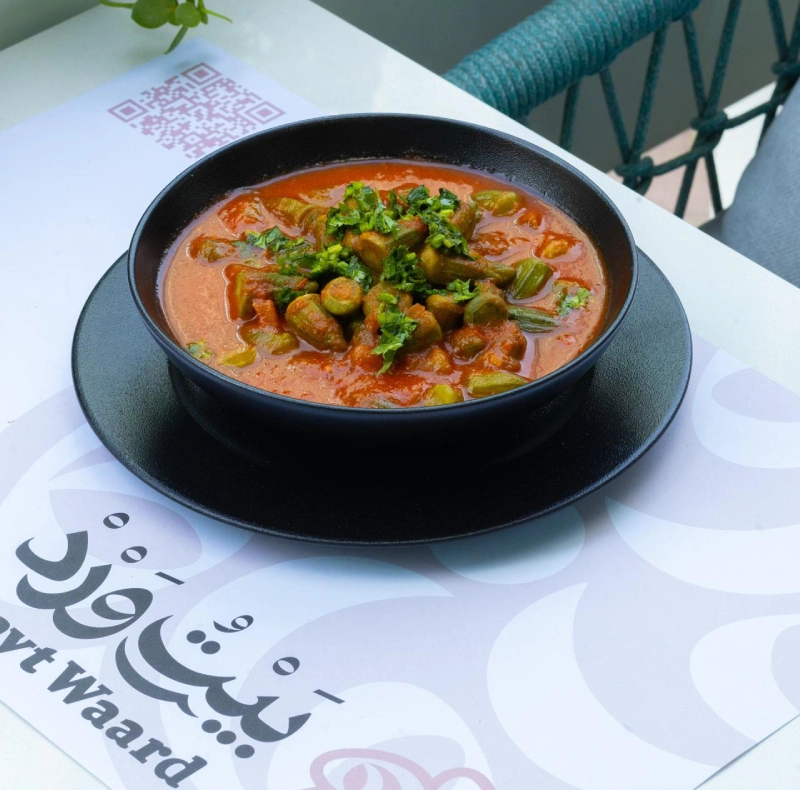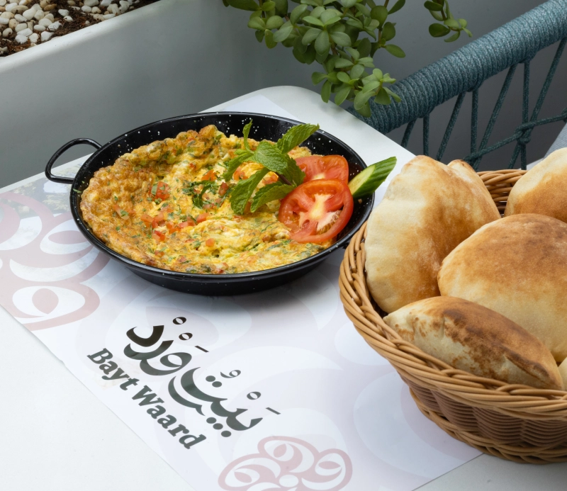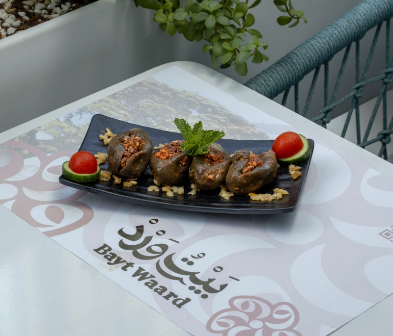Sliced olive mixed with green thyme, capsicum paste, tomato and walnut
